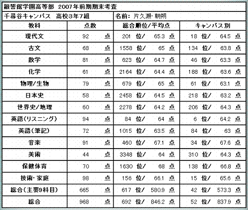 そういえばテストが返ってきたわねー。結果は此方。ノートの幅に入りきらないようだから(笑)面倒だけど、見るかーって方は飛んで頂戴ね。